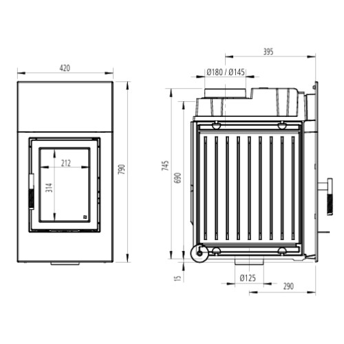 - H10 Korpus Breite/Tiefe mit 360/545 mm für 33 cm Holzscheite