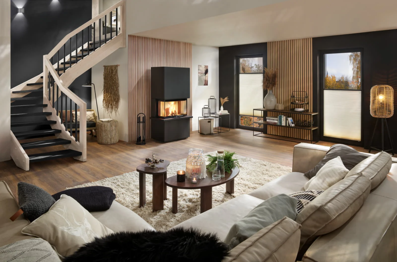 Die klare Linienführung und die reduzierte Formsprache machen den Ofen zur idealen Ergänzung moderner Wohnkonzepte. Gleichzeitig sorgen verschiedene Verkleidungsoptionen – von klassischem Stahl bis hin zu edlen Natursteinvarianten – dafür, dass sich der Osorno harmonisch in unterschiedliche Einrichtungsstile integrieren lässt.