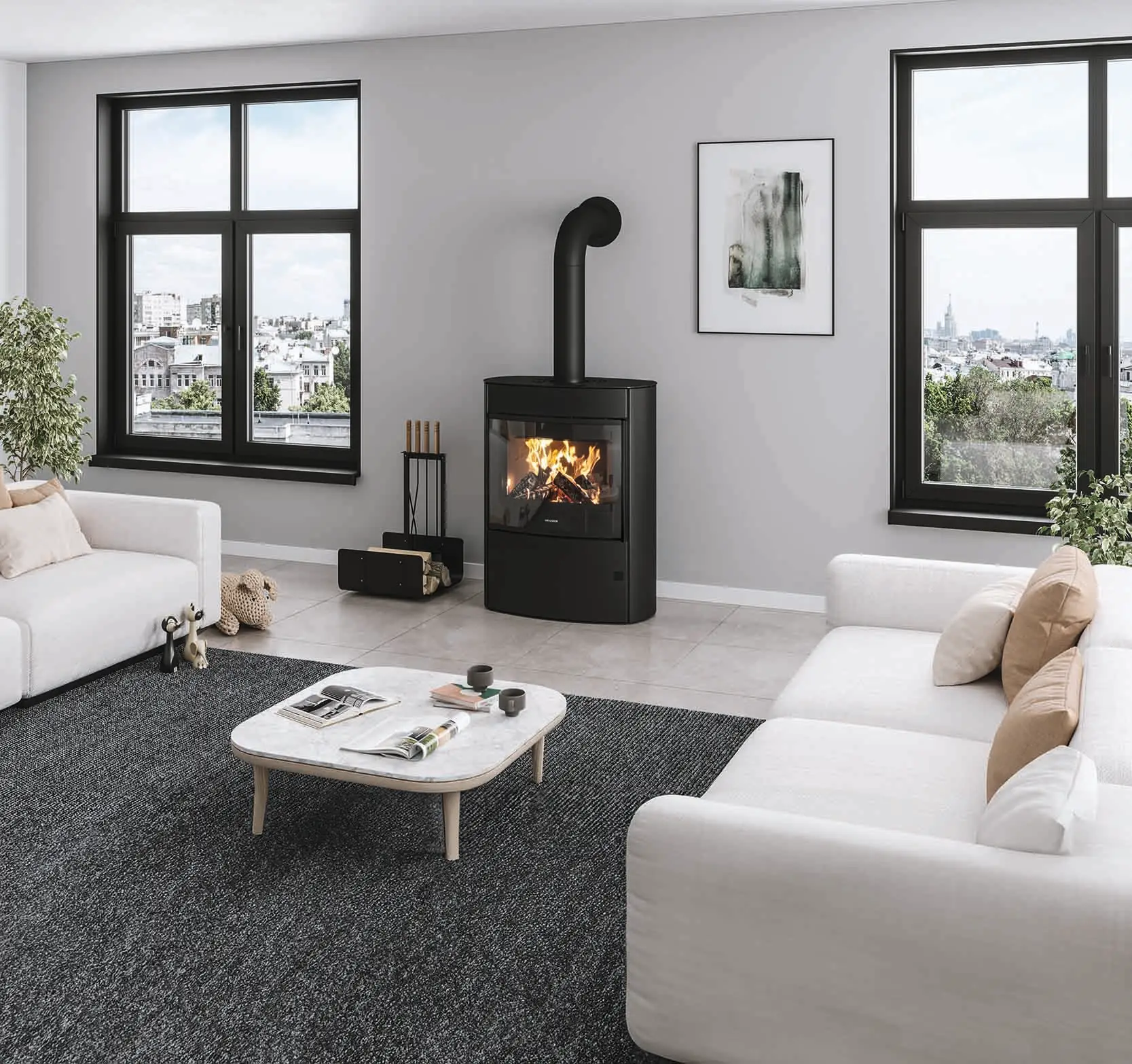 Der Oranier FERAS überzeugt durch seine elegante Optik und eine leistungsstarke, umweltgerechte Verbrennungstechnik. Die große Frontscheibe bietet einen beeindruckenden Blick auf das Flammenspiel und sorgt für eine besonders gemütliche Atmosphäre im Wohnraum. Dank integrierter Scheibenspülung bleibt die Sichtscheibe länger sauber und ermöglicht dauerhaft freie Sicht auf das Feuer.