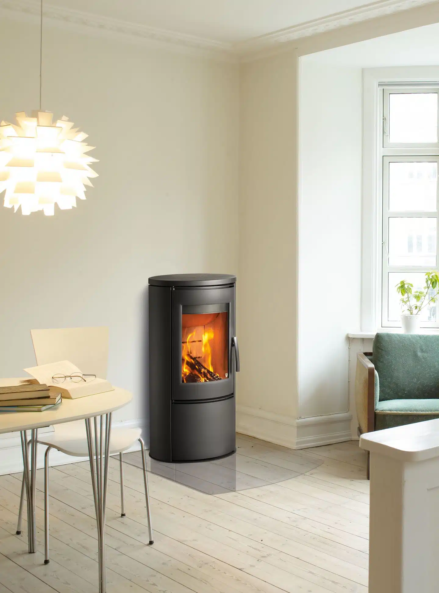 Der VARDE Shape 2 AIR ist ein frei stehender, moderner Holz‑Kaminofen mit elegantem Design und großer Sichtscheibe für den Blick auf die Flammen. Sein schlanker, runder Aufbau passt gut zu verschiedenen Einrichtungsstilen.