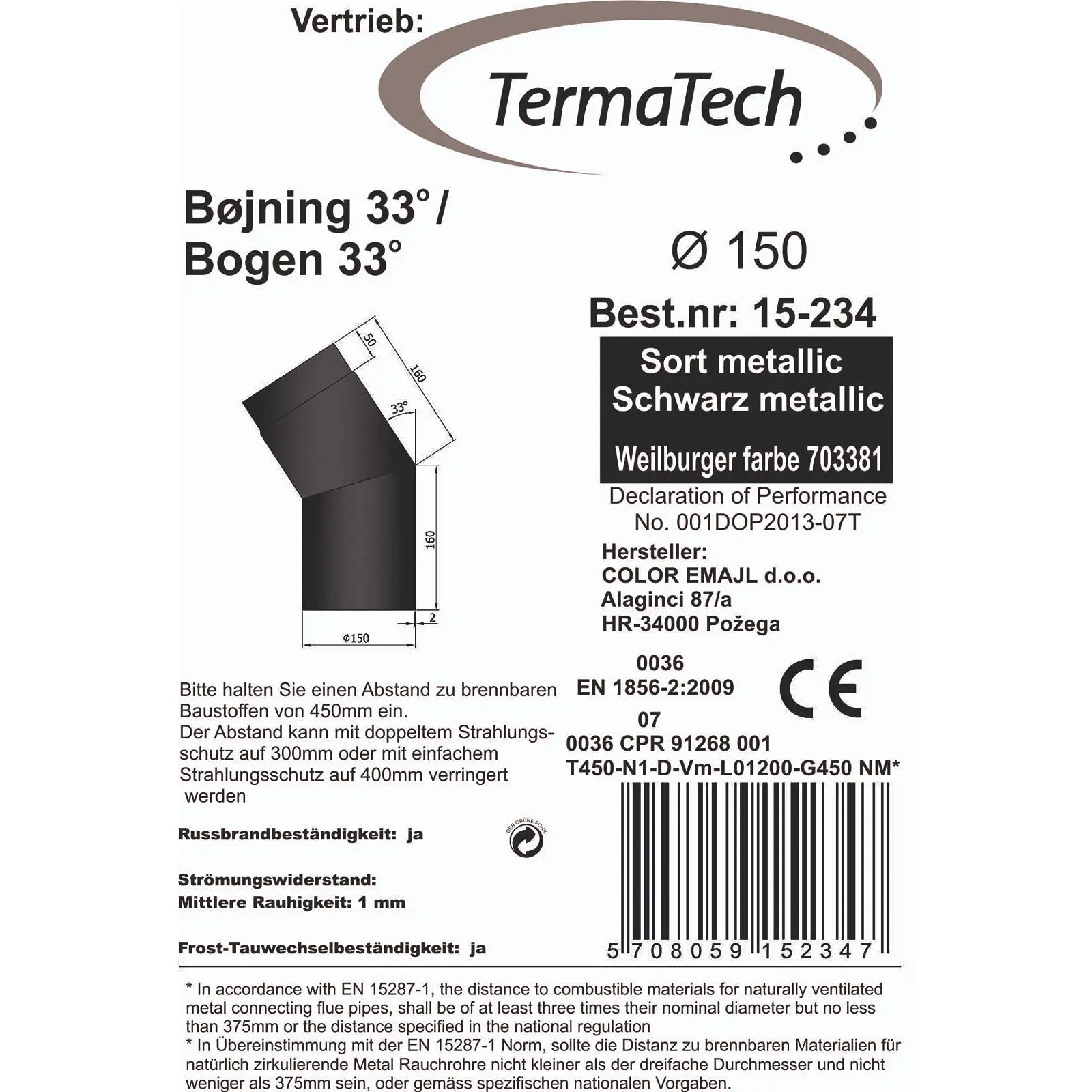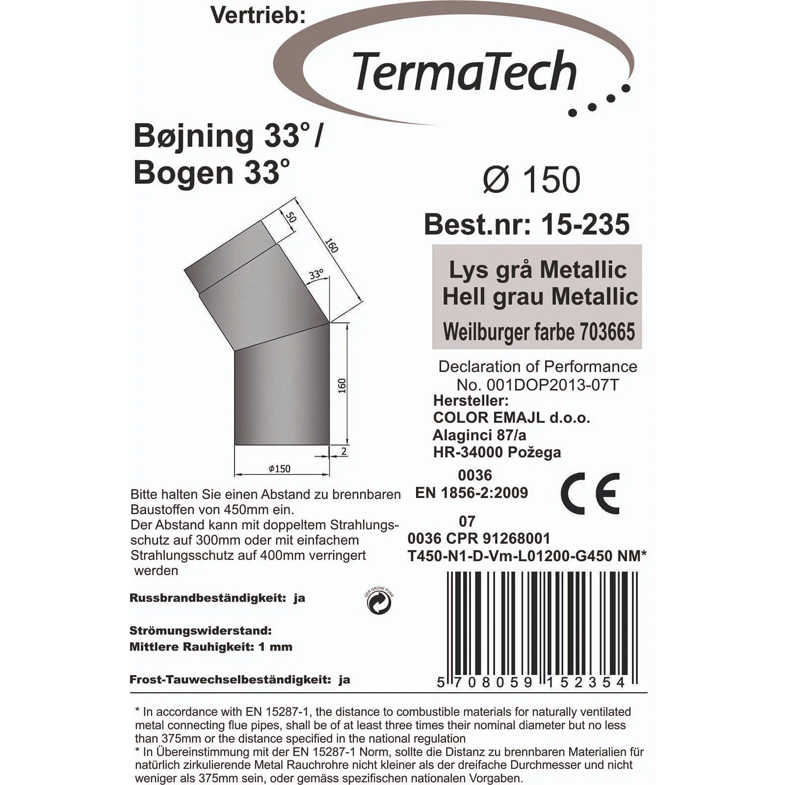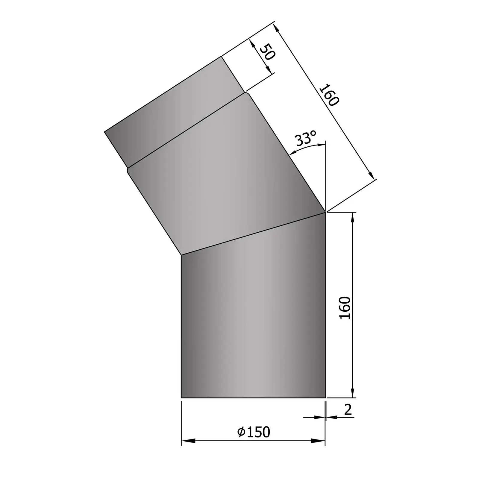 Produktinformationen "Rauchrohr 150 mm Durchmesser lackiert Bogen 33 Grad"