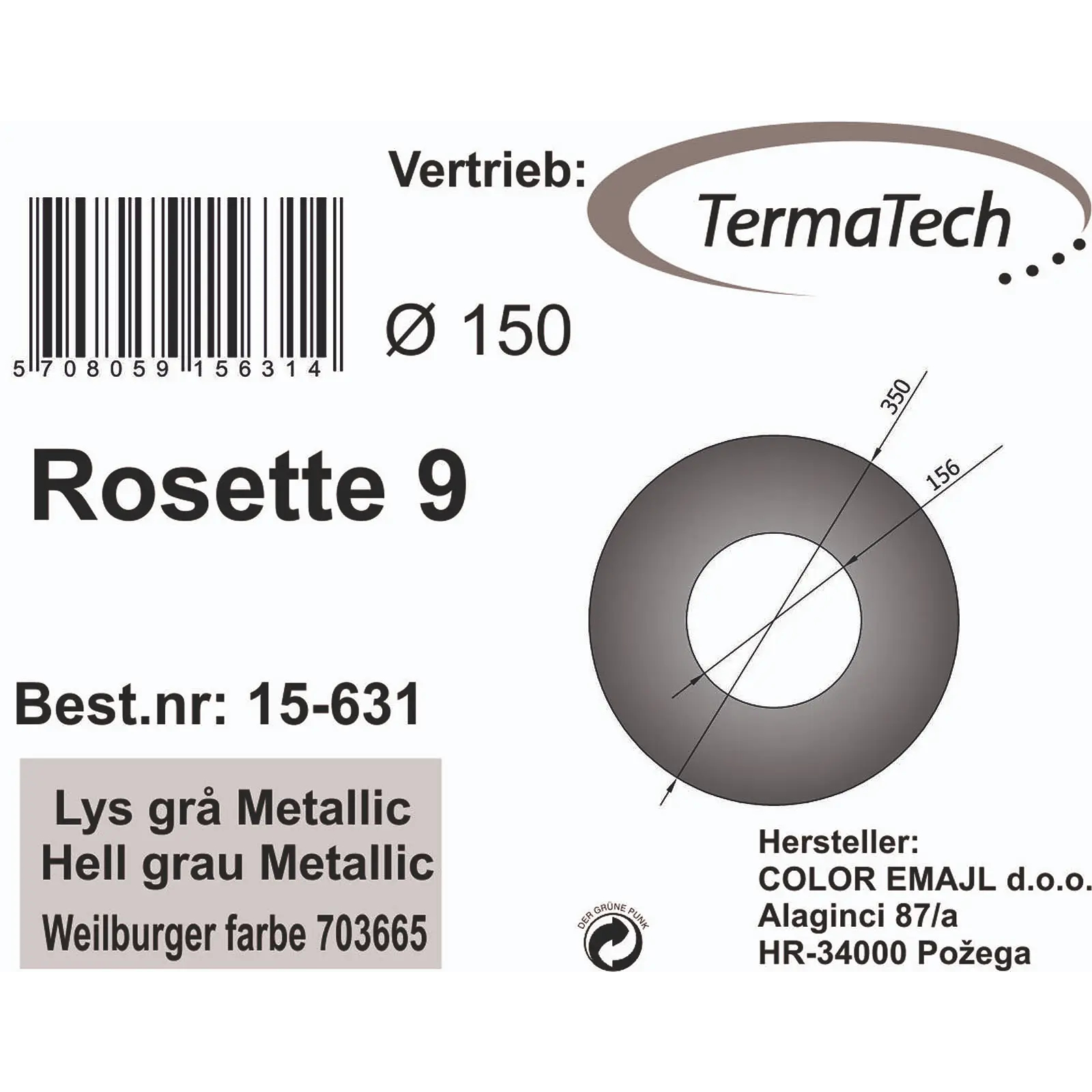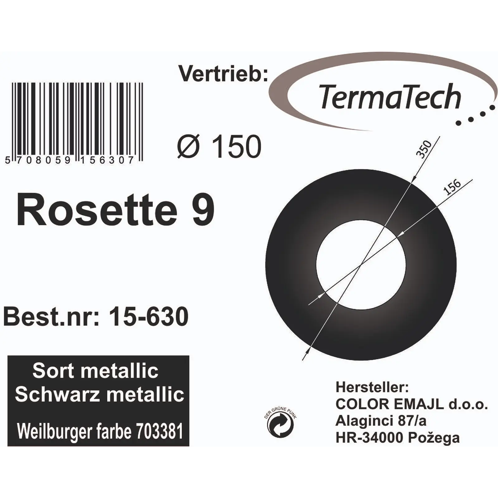 Rosette 90 mm lackiert 150 mm
